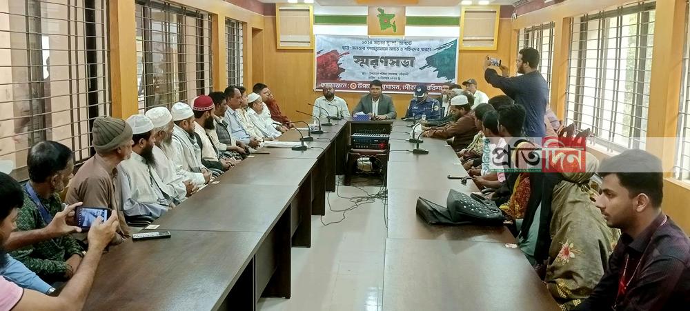 গৌরনদী উপজেলা নির্বাহী কর্মকর্তা মোঃ আবু আব্দুল্লাহ খানের সভাপতিত্বে অনুষ্ঠিত ওই স্মরণ সভায় অতিথি হিসেবে উপস্থিত ছিলেন উপজেলা সহকারী কমিশনার (ভূমি) মোঃ রাজীব হোসেন, গৌরনদী মডেল থানার অফিসার ইনচার্জ (ওসি) মোঃ ইউনুছ মিয়া, গৌরনদী উপজেলা বিএনপির আহবায়ক বীর মুক্তিযোদ্ধা সৈয়দ সরোয়ার আলম বিপ্লব, সিনিয়র সাংবাদিক মোঃ জহুরুল ইসলাম জহির, গৌরনদী প্রেসক্লাবের সাবেক সভাপতি মোঃ খোন্দকার মনিরুজ্জামান মনির, উপজেলা জামাতের সেক্রেটারি মোঃ বাইজিদ শরীফ, সরিকল ইউনিয়ন পরিষদের সাবেক চেয়ারম্যান মোঃ মনজুর হোসেন মিলন, ইসলামী আন্দোলনের গৌরনদী উপজেলা সেক্রেটারী মাওলানা মোঃ এমদাদ হোসেন, আহত ২২জন ছাত্র-জনতাসহ আহত এবং নিহতদের পরিবারের সদস্যরা। সভা শেষে শহীদদের আতœার মাগফেরাত ও আহতদের আশু আরোগ্য কামনা কারে দোয়া-মোনাজাত করা হয়। ##