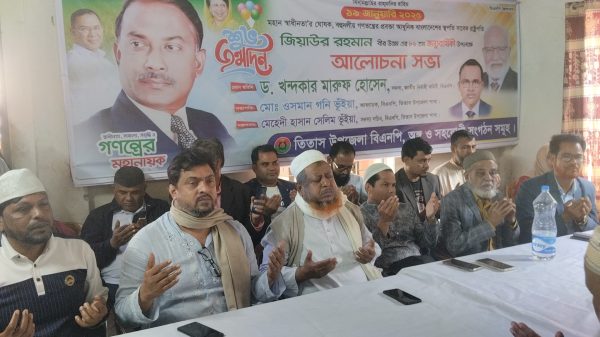তিতাস (কুমিল্লা) প্রতিনধিঃ কুমিল্লার তিতাস উপজেলা বিএনপির ও অঙ্গ সহযোগী সংগঠনের আয়োজনে গতকাল রবিবার সকালে তিতাস ভবনে শহীদ রাষ্ট্রপতি জিয়াউর রহমানের ৮৯ তম শুভ জন্মদিন উদযাপন উপলক্ষে আলোচনাসভা ও মিলাদ-দোয়া