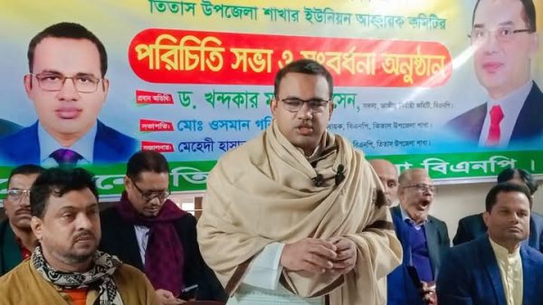 তিতাস (কুমিল্লা) প্রতিনিধিঃ কুমিল্লার তিতাসের নয়টি ইউনিয়ন বিএনপির আহবায়ক কমিটির পরিচিত সভা ও সংবর্ধনা অনুষ্ঠান অনুষ্ঠিত হয়েছে। গতকাল শনিবার সকালে উপজেলার গাজীপুরস্থ তিতাস ভবনে এই পরিচিত সভা ও সংবর্ধনা অনুষ্ঠান