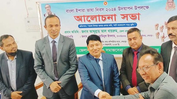 শেরপুর : ‘বাংলায় ইশারা ভাষার প্রসার করি, স্মার্ট বাংলাদেশ গড়ে তুলি, এ স্লোগানকে সামনে রেখে শেরপুরে নানা আয়োজনে জেলা প্রশাসন কার্যালয়ে পালিত হয়েছে ইশারা ভাষা দিবস। এই আয়োজনে শহরের বাক প্রতিবন্ধী