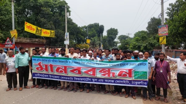 ফুলবাড়ী (দিনাজপুর) : দিনাজপুরের ফুলবাড়ীতে স্থানীয় যুবদলের নেতা কর্র্তৃক জোর পূর্বক কবরস্থান ও ঈদগাহ মাঠের জায়গা দখল ও মাটি উত্তোলনসহ গ্রামবাসীর উপর সন্ত্রাসী হামলার প্রতিবাদে মানববন্ধন ও বিক্ষোভ অনুষ্ঠিত হয়েছে।