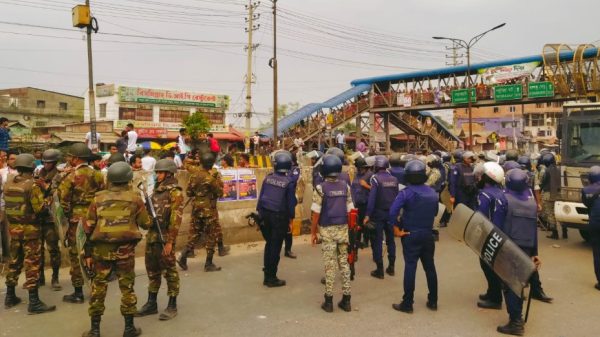 সাভার (ঢাকা) প্রতিনিধি : ঢাকার সাভারে ডায়নামিক সোয়েটার নামে একটি পোশাক কারখানার শ্রমিকেরা বিভিন্ন দাবিতে ঢাকা-আরিচা মহাসড়ক অবরোধ করেছেন। এসময় অবরোধে সড়কের উভয় পাশে অন্তত ৬ কিলোমিটার যানজটের সৃষ্টি হয়েছে।