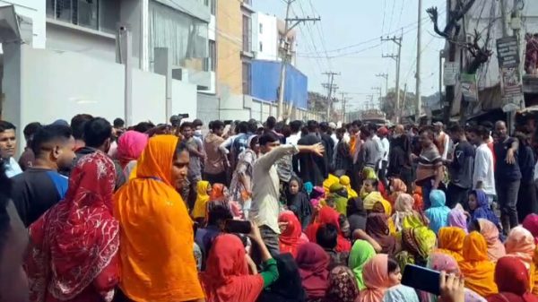 আশুলিয়া (ঢাকা) প্রতিনিধি : সাভারের আশুলিয়ায় বকেয়া বেতনের দাবিতে সড়ক অবরোধ করে বিক্ষোভ করছেন একটি পোশাক কারখানার শ্রমিকরা। এতে করে ওই আঞ্চলিক সড়কটিতে যান চলাচল বন্ধ আছে। রোববার (১৬ ফেব্রুয়ারি)