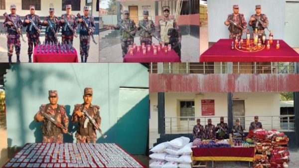 আনোয়ার হোসেন, নিজস্ব প্রতিনিধিঃ যশোরের ব্যাটালিয়ন (৪৯ বিজিবি) অভিযানে বিদেশী মদ, ভারতীয় ফেন্সিডিল, নেশা জাতীয় ট্যাবলেট, শাড়ী, কম্বল, থ্রী-পিস, তৈরী পোশাক, কাজু বাদাম, কিশমিশ, চকলেট এবং কসমেটিক্স সামগ্রী আটক করেছেন।