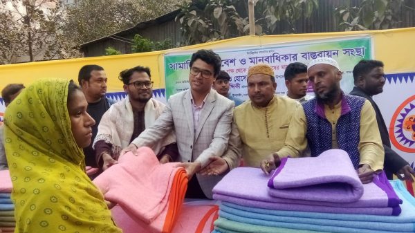 সাভার (ঢাকা) প্রতিনিধি : ঢাকার আশুলিয়ায় সামাজিক পরিবেশ ও মানবাধিকার বাস্তবায়ন সংস্থার পক্ষ থেকে শীতার্তদের মাঝে কম্বল বিতরণ করা হয়েছে। শনিবার (২৫ জানুয়ারি) বিকেল ৪ ঘটিকায় আশুলিয়ার সোনিয়া মার্কেট এলাকায়