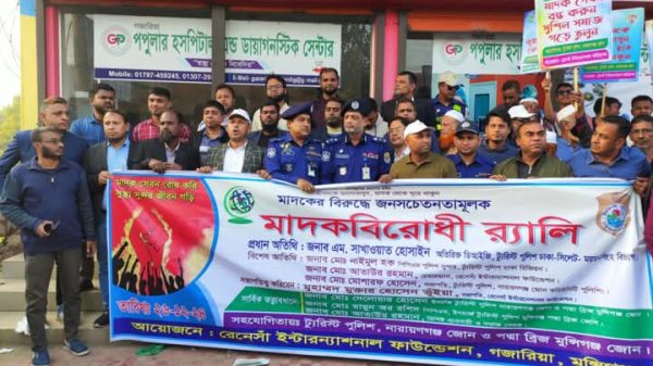 মুন্সীগঞ্জ প্রতিনিধি : মুন্সীগঞ্জ গজারিয়া উপজেলা রেনেসাঁ ইন্টারন্যাশনাল ফাউন্ডেশনের উদ্যোগে মাদকবিরোধী র র্যালি অনুষ্ঠিত হয়েছে। গজারিয়া থানা প্রাঙ্গন থেকে র্যালিটি শুরু হয়ে গজারিয়া উপজেলা স্বাস্থ্য কমপ্লেক্সে প্রদক্ষিণ করে উপজেলার পপুলার
