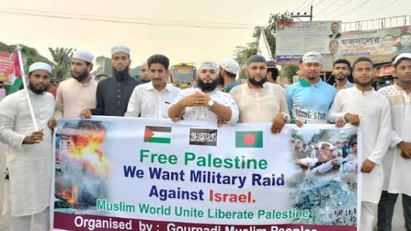 গৌরনদী (বরিশাল) প্রতিনিধিঃ যুদ্ধবিরতি চুক্তি লঙ্ঘন করে ফিলিস্তিনের গাজায় ইসরাইলের চলমান বর্বরোচিত হামলার প্রতিবাদে বরিশালের গৌরনদীতে বিক্ষোভ মিছিল ও প্রতিবাদ সভা শেষে দোয়া মোনাজাত অনুষ্ঠিত হয়েছে। সোমবার (৭ এপ্রিল) আসর