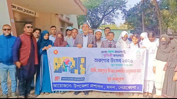 নেত্রকোনা প্রতিনিধি, হাবিবুর রহমান : নেত্রকোনার মদন উপজেলা প্রশাসনের উদ্যোগে ২০২৫ নতুন বছরকে স্বাগতম জানিয়ে নতুন বাংলাদেশ গড়ার লক্ষ্যে উপজেলা প্রশাসনের উদ্যোগে এক কর্মসূচিতে নেমেছে এসো দেশ বদলাই তারুণ্য উৎসব