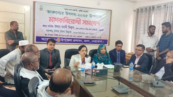 নেত্রকোনা প্রতিনিধি, হাবিবুর রহমান : নেত্রকোনার মদন উপজেলা প্রশাসনের আয়োজনে জেলা প্রশাসক ও বিজ্ঞ ম্যাজিস্ট্রেট বনানী বিশ্বাসকে প্রধান অতিথি করে উপজেলা নির্বাহী অফিসার অহনা জিন্নাতের সভাপতিত্বে তারুণ্যের উৎসব ২০২৫ উপলক্ষে