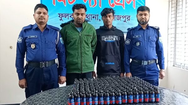 ফুলবাড়ী (দিনাজপুর) প্রতিনিধি : দিনাজপুরের ফুলবাড়ী থানা পুলিশের মাদক বিরোধী অভিযানে ১৯৯ বোতল আমদানি নিষিদ্ধ ভারতীয় ফেন্সিডিলসহ দুই মাদক কারবারীকে আটক করেছে ফুলবাড়ী থানা পুলিশ। গত (২৪ ডিসেম্বর) মঙ্গরবার বিকাল