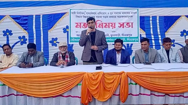 ফুলবাড়ী (দিনাজপুর) প্রতিনিধি : দিনাজপুরের ফুলবাড়ী পৌর এলাকার কাঁটাবাড়ী (নয়াপাড়া) গ্রামে মদের ভাটি বসানোর প্রতিবাদে যুব সমাজের আয়োজনে ও সামাজিক সংগঠন ফুলবাড়ীর আলো এর সৌজন্যে মাদক বিরোধী মতবিনিময় সভা অনুষ্ঠিত