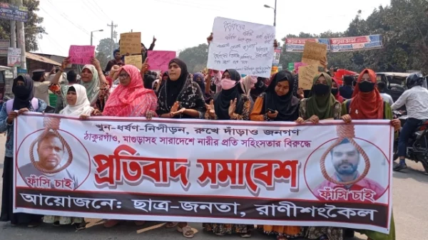 রাণীশংকৈল (ঠাকুরগাঁও) প্রতিনিধি : ঠাকুরগাঁওসহ দেশের বিভিন্ন স্থানে শিশু ও নারী ধর্ষণ ও নির্যাতনের প্রতিবাদে রবিবার (৯ মার্চ) দুপুরে ঠাকুরগাঁওয়ের রাণীশংকৈলে ছাত্র-জনতার উদ্যোগে এক সমাবেশ অনুষ্ঠিত হয়েছে। এদিন দুপুরে উপজেলা